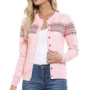 GRACE KARIN Women’s Crewneck Lightweight Cardigan Sweater Heart Print(M,Heart-Pink)