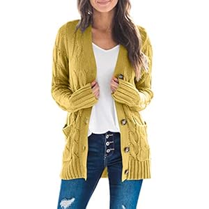 MEROKEETY Women’s Long Sleeve Cable Knit Sweater Open Front Cardigan Button Loose Outerwear Mustard