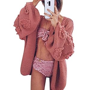 Simplee Women’s Oversized Lantern Sleeve Cable Knit Loose Cozy Open Front Cardigan Sweaters (Rose 4-6)