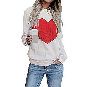 Buy From AmazonP&A Fashion Women’s Pullover Sweaters Long Sleeve Crewneck Cute Heart Knitted Sweater Loose Tops Blouse White