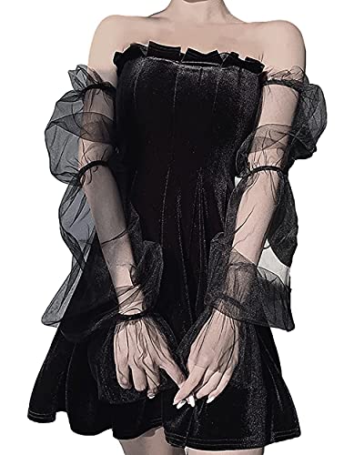 Style: Gothic Sexy Elegant, Sweetheart Neckline With Ruffle And Exquisite Pendant,Velvet Stitching Lace, Sling Halter A-Line Dress, Slim Fitting, Without Zipper.