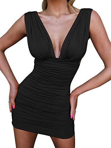 Sleeveless,tank,deep v neck,high waist,mini-length,ruched(it can be adjustable),backless,tight,bodycon,classic,elegant