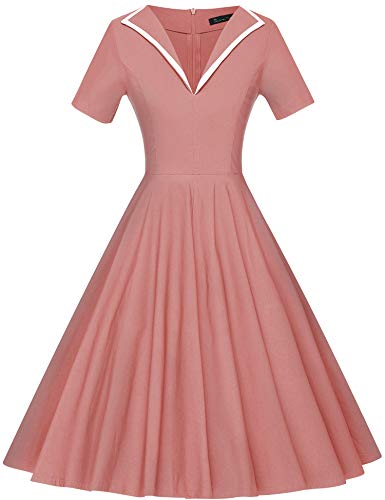 Strechy 50`s Swing Dress Made from 93% Polyester with 7% Spandex,V-neck,short sleeves,lovely pleated, full-line£¬invisible zipper in back