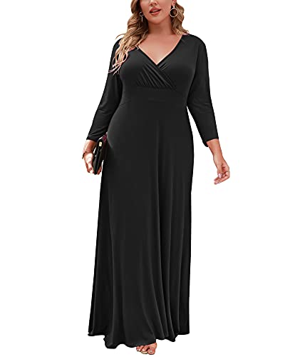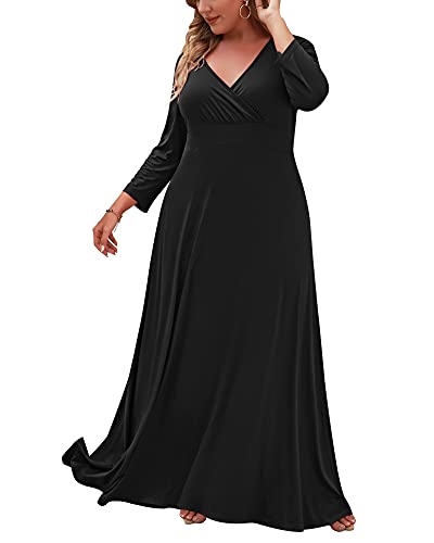 【Soft Material】: 95% Rayon,5% Spandex,It is a lightweight, loose,stretchy,soft and comfortable fabric,easy to love wearing all day long.Look elegant with this chic plus size maxi dress! Made in a solid color with a plunging v-neckline and 3/4 sleeves.