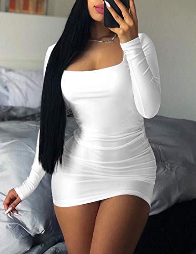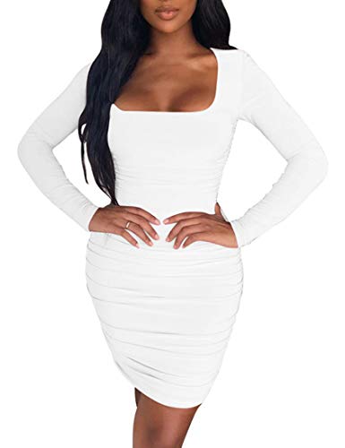Details:The basic bodycon mini dress features ruched details. Long sleeve, style with square neck detail. stay on trend, pefect for fall winter spring. Long sleeve, Bodycon fitted