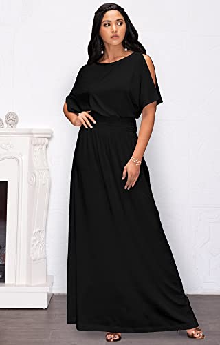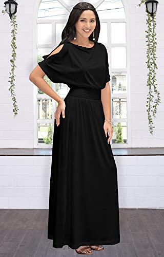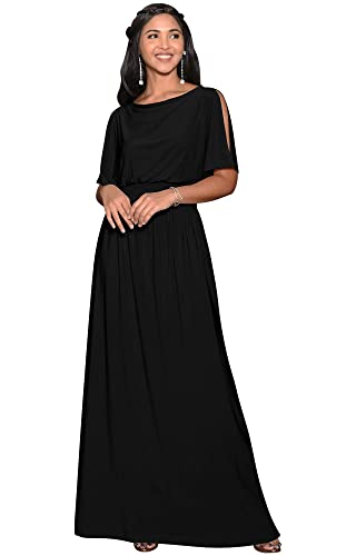 Split short sleeved maxi dress; semi-formal floor length day dresses; office wear outfits; Black elegant sundresses; simple solid color maxi; stretchy elastic waist dresses; pregnancy gown; travel holiday vacation cruise maxi sun dress