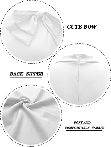 LAGSHIAN Women Fashion Peplum Bodycon Short Sleeve Bow Club Ruffle Pencil Party Dress White
