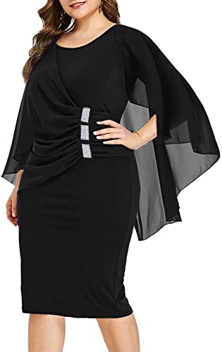 ➤ Perfect Design — Plus size pencil dress features chiffon overlay,scoop neck, this flowy layer hides a lot!