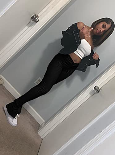 MATERIAL: Women stacked pants is made of cotton blend, polyester & spndex. Lightweight, comfortable, very soft and comfy to wear. Super stretch fabric is perfect for your body contours.