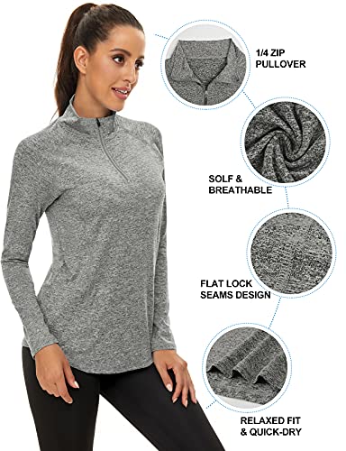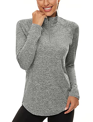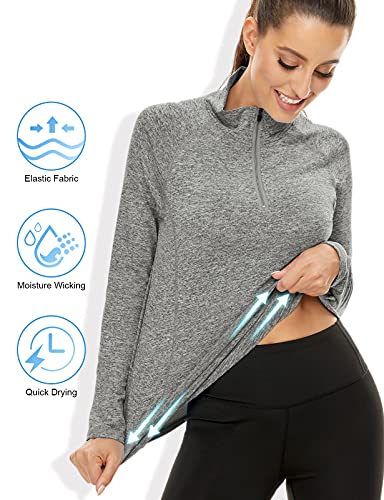 LURANEE Women’s Long Sleeve Workout Shirt, Half Zip Pullover, Plus Size Athletic Raglan, Breathable Tennis/Baseball Tee, Grey 2XL