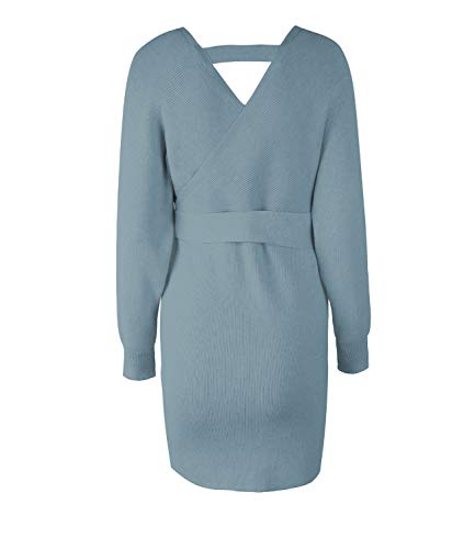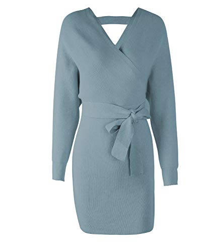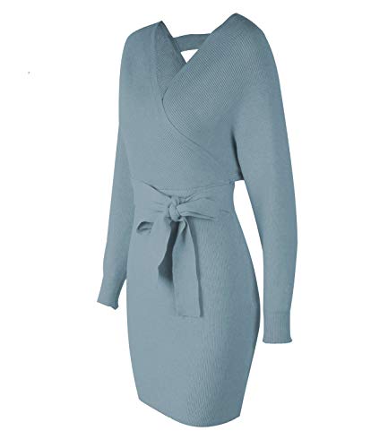 Long sleeve dresses for women features self-tie waist and mini length, cute and sexy sweater dresses, V neck with batwing sweaters and wrap dress design, ladies and feminine style, suit as a semi formal dresses