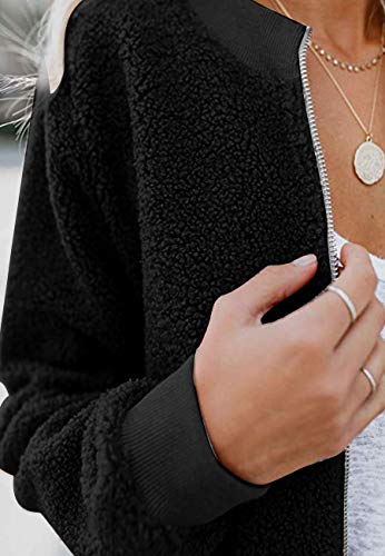 DESIGN:Sherpa faux fleece jacket, zipper fly closure, ribbed hem cuffs, casual and stylish, long sleeve, fuzzy.Pink/Brown/Armygreen/Beige.