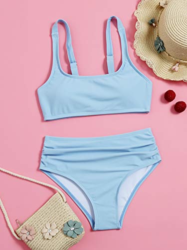 Solid color, wireless, adjustable wide shoulder strap and high waist bottom