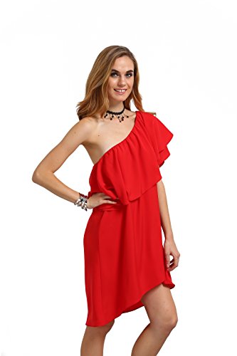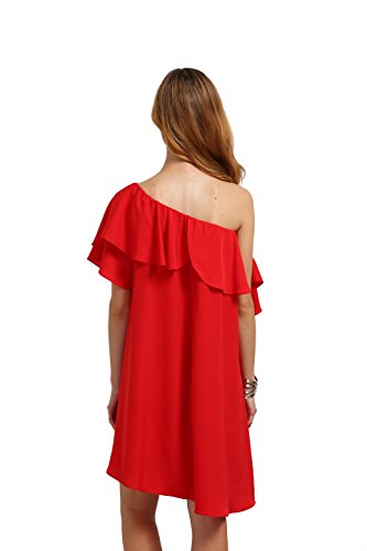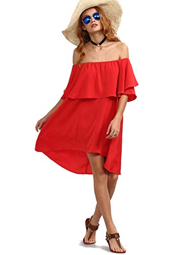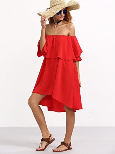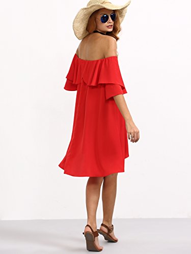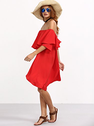Romwe Women’s Off The Shoulder Ruffle Casual Loose Shift Dress red M