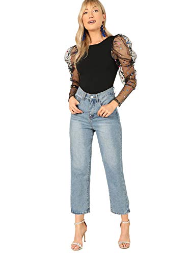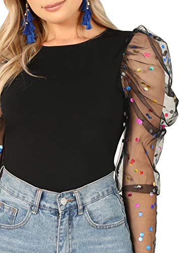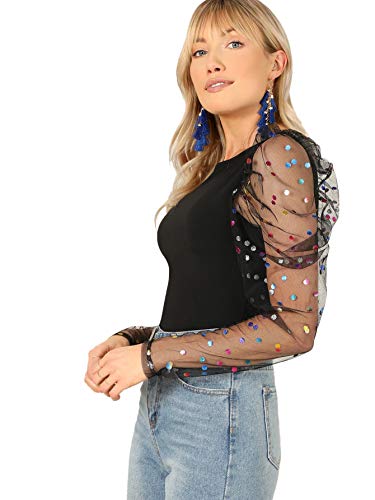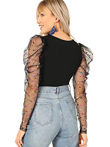 Stand collar, Long sleeve, leg-of-mutton sleeve, contrast mesh