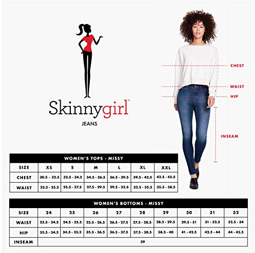 Bethenny Frankel’s Skinnygirl Jeans Maty High Rise Sailor Flare Full Length Jean with front seams, metal details at hips, easy zipper fly on a contour fit body with front splits. Pairs well with all tops from fashionable to your basic Tee shirt as well as all footwear from stylish boots to trendy heels or your favorite flats. Great to wear to work, class or happy hour with friends providing the flexability everyone wants in a wardrobe. Available in assorted looks from basic true black, different hemline types and added detailing. Skinnygirl is a Lifestyle Movement, We believe in living a balanced life with more flair and less compromise, so you can indulge a little and live a lot. Skinnygirl is You, We believe every woman deserves to feel confident and live free from judgments. It’s not about a shape or size, it’s about every shape, every size, and every woman. “It’s not about the words. It’s about applauding your strength and feeling good about yourself. It is important to me that this line is inclusive of all shapes and sizes.” Skinnygirl is a lifestyle brand passionate about bringing women straightforward, stylish solutions that add ease and flair to their lives – each and every day. We believe women can have it all; a truly balanced lifestyle, with delicious, smart products to help them enjoy everything they love. No guilt. No hassle. We’re a fresh, modern, new-school way for women to cocktail, socialize, and live their lives. They know what they want out of life, we’re just here to show them how to get it. Skinnygirl is a state of mind and a sensibility / Skinnygirl is an Attitude