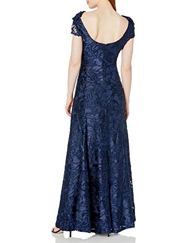 Tahari ASL Women’s Plus Size Cap Sleeve Cowl Neck Velvet Dress, Navy Burnout Floral, 20W