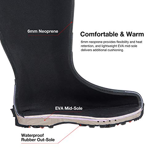 【100% Waterproof & Warm】6 mm Neoprene Uppers provides extra toughness and a 100% waterproof hunting boot, along with shock absorption and heat retention properties. Your hunting trip will never be spoiled by the wet or cold conditions. Comfort Rated : -4°F/-20°C to 50°F/ 10°C.