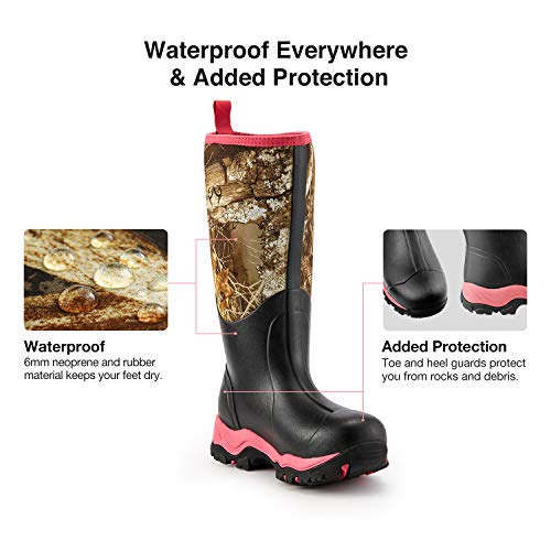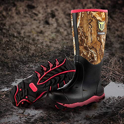 TIDEWE Hunting Boot for Women, Insulated Waterproof Durable Women’s Hunting Boot, 6mm Neoprene and Rubber Outdoor Boot Realtree Edge Camo(Pink Size 9)