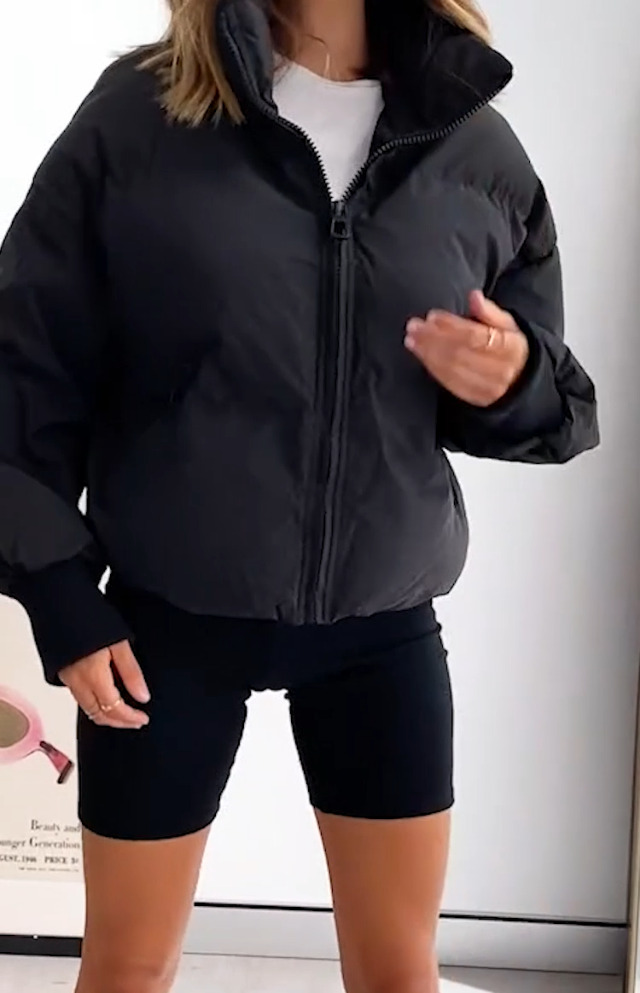 This puffer jacket creates the oversized silhouette that may be both trendy and comfy to wear.